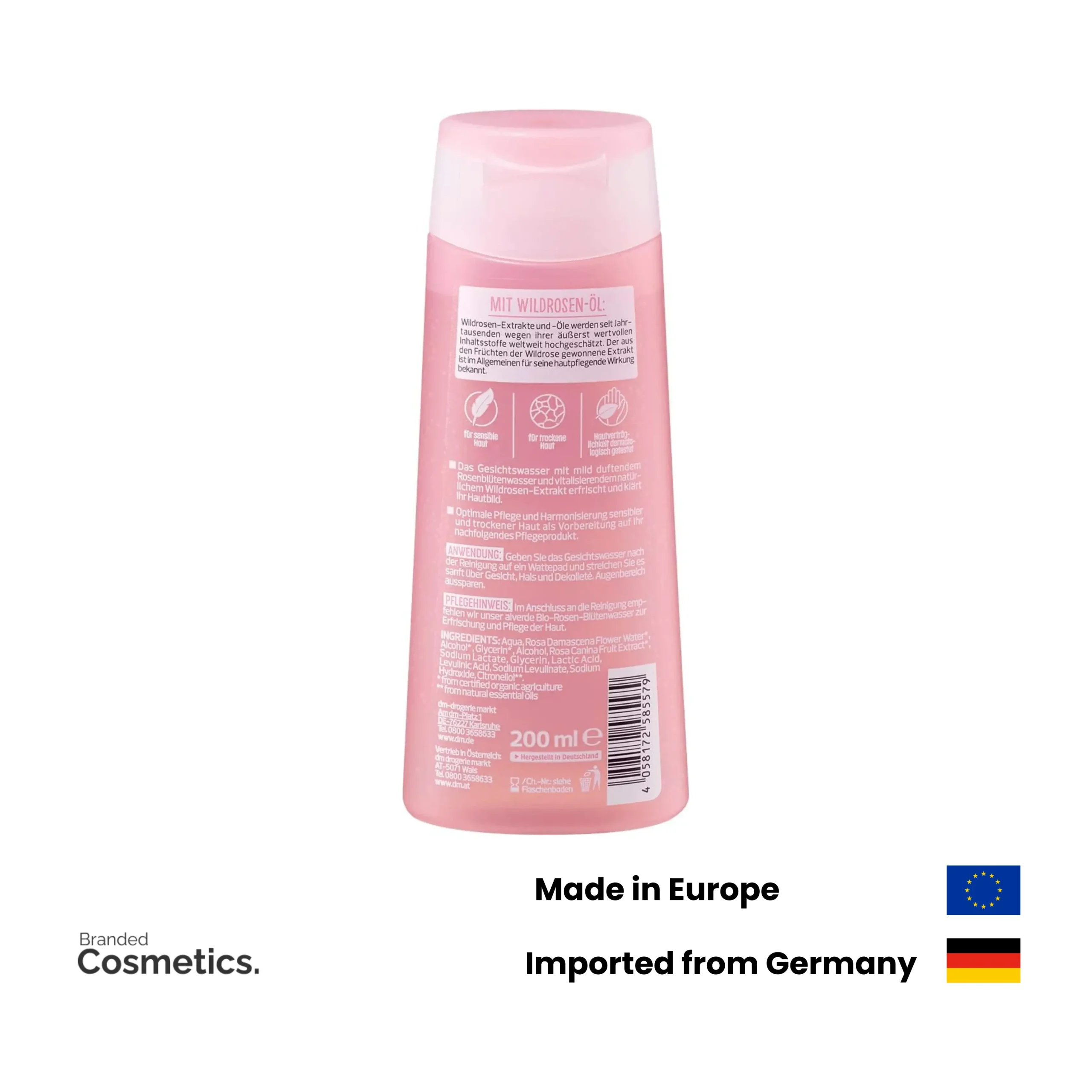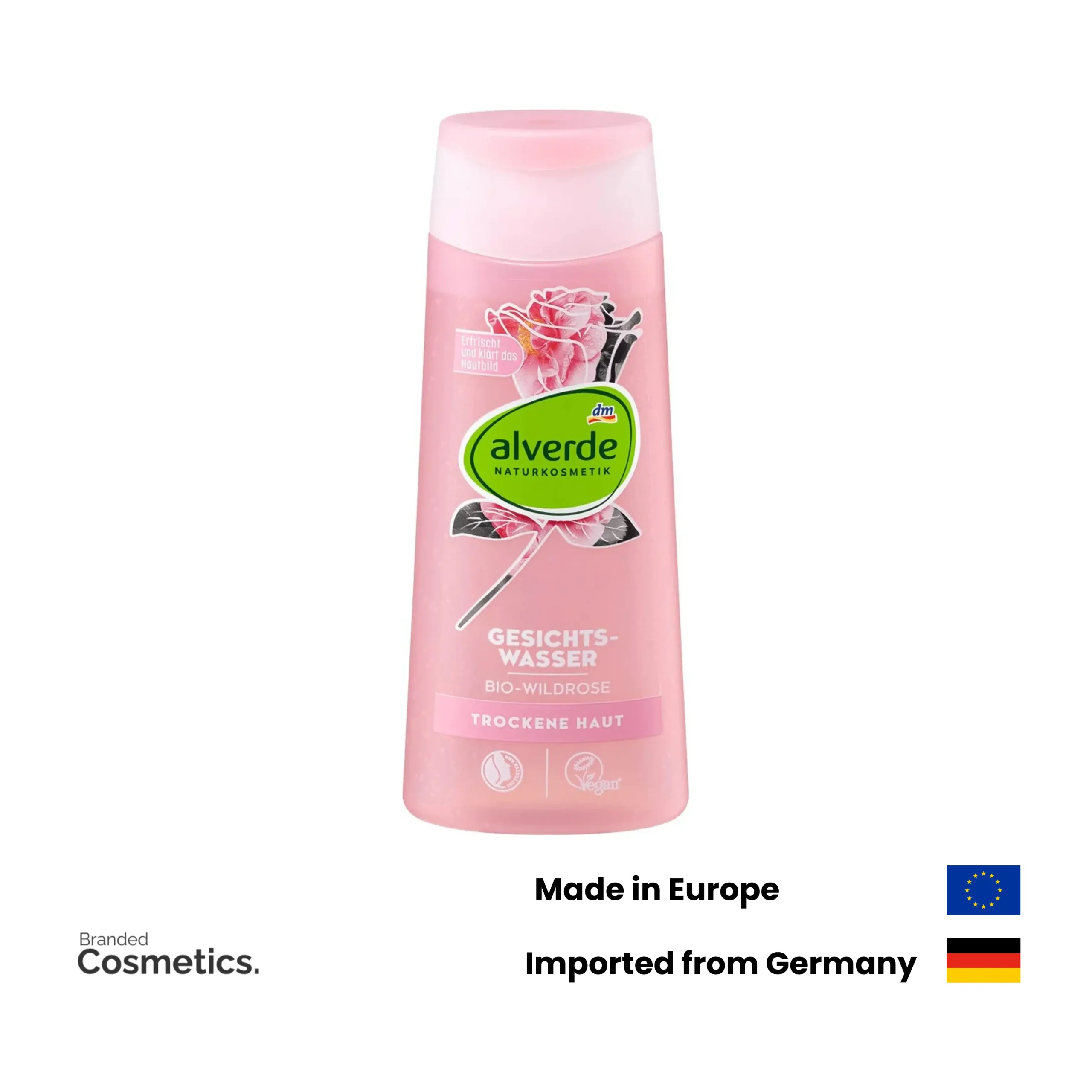 Alverde Natural Cosmetics Organic Wild Rose Facial Toner, with its mild, fragrant rose blossom water and revitalizing natural wild rose extract, refreshes and purifies your skin. It’s the optimal care and harmonization for sensitive and dry skin, preparing it for your next skincare product.