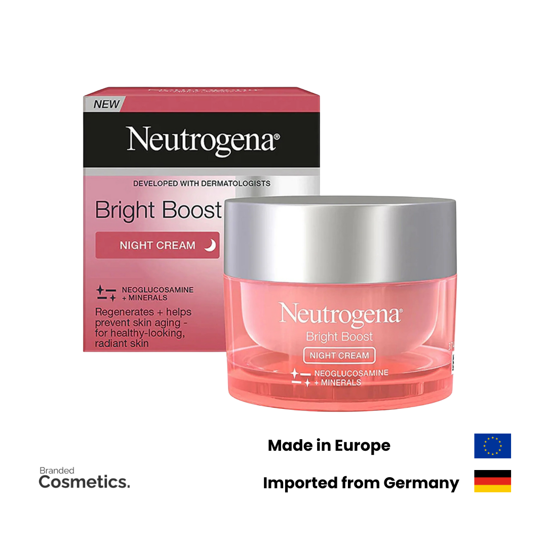 Enhance & invigorate your skin during your slumber with Neutrogena® Bright Boost Night Cream 50ml. This advanced formulation contains Neoglucosame, skin-conforming agents, & Hyaluronic acid to aid in your skin’s innate overnight recovery process, producing a more luminous & polished complexion upon waking. The exclusive memory gel texture won’t transfer onto your pillow & forms a light shield, supplying vital brightening ingredients to rejuvenate & replenish your skin after a busy day.