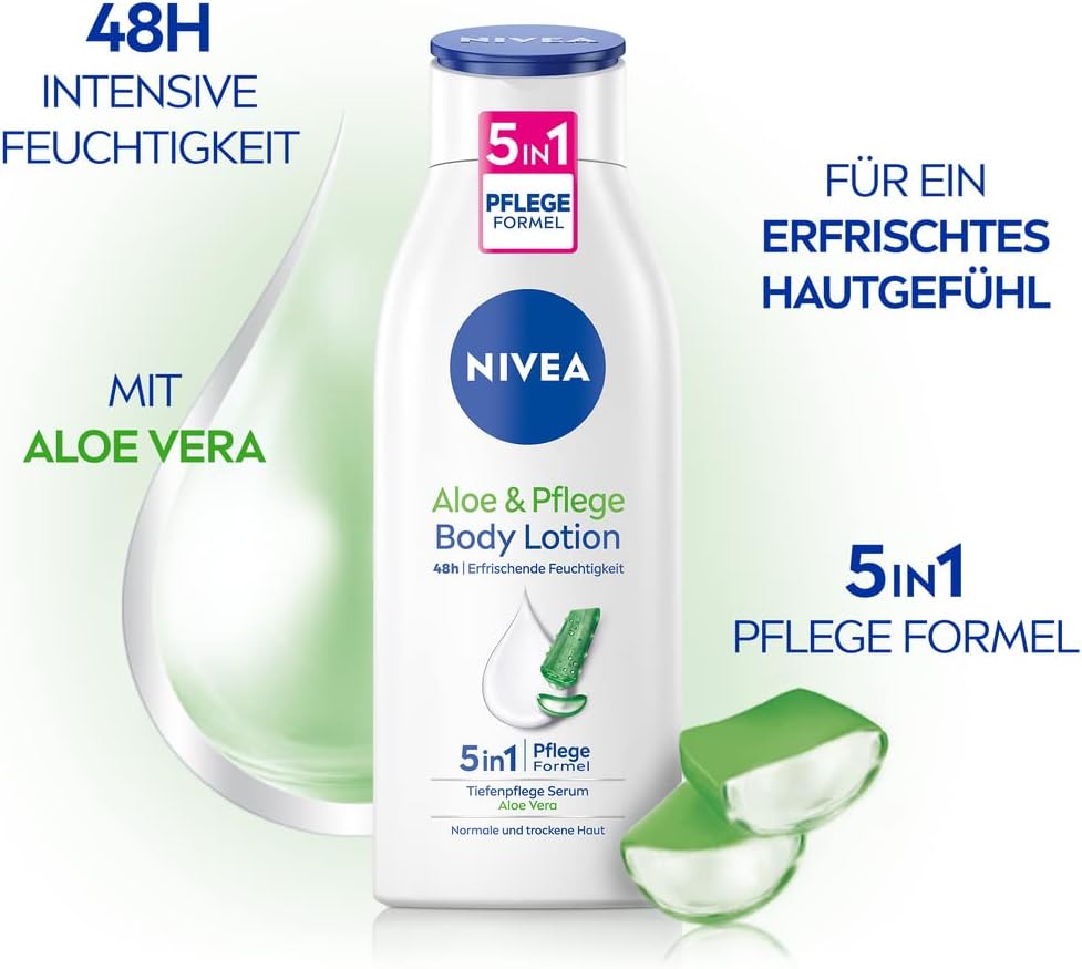 - 3 in 1 effect – With valuable aloe vera, the pampering body lotion gives noticeably smooth and naturally beautiful skin for 48 hours: for an effect you can feel and see.